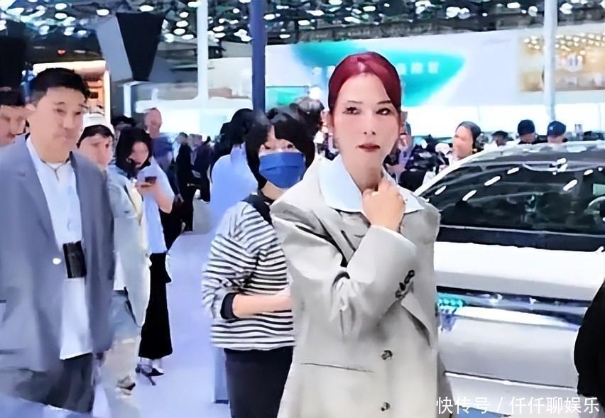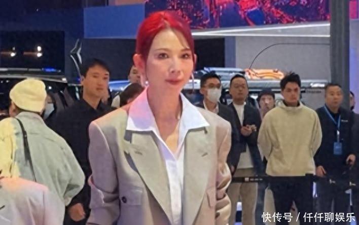 广东车展人山人海,有人看见蔡少芬来了,红头发,西装,想显得精神点,52岁的人了,是真的瘦,感觉和以前电视里不一样了,老了,也累了,真的能感觉到。